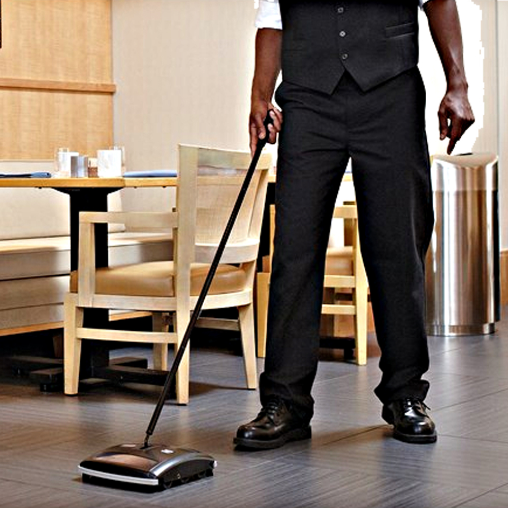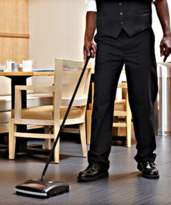 The Rubbermaid Commercial Executive Series Dual-Action Brushless Mechanical Sweeper is constructed of durable galvanized steel and tough ABS plastic. Compact 7.5″ sweep path fits easily into tight spots. Threaded handle allows for easy assembly. Easy-to-empty dirt trays make cleaning efficient and mess-free. Great for hardwood floors or low carpeted areas. Low profile design provides easy access around and under furniture. Quick-view Window easily helps the user see when it’s time to empty. Soft Rubber wheels glide easily on any surface. Two rubber agitators grab large and small dirt and debris. Easy to clean after use.