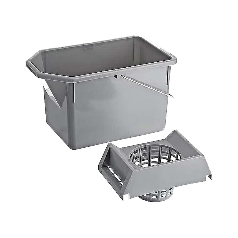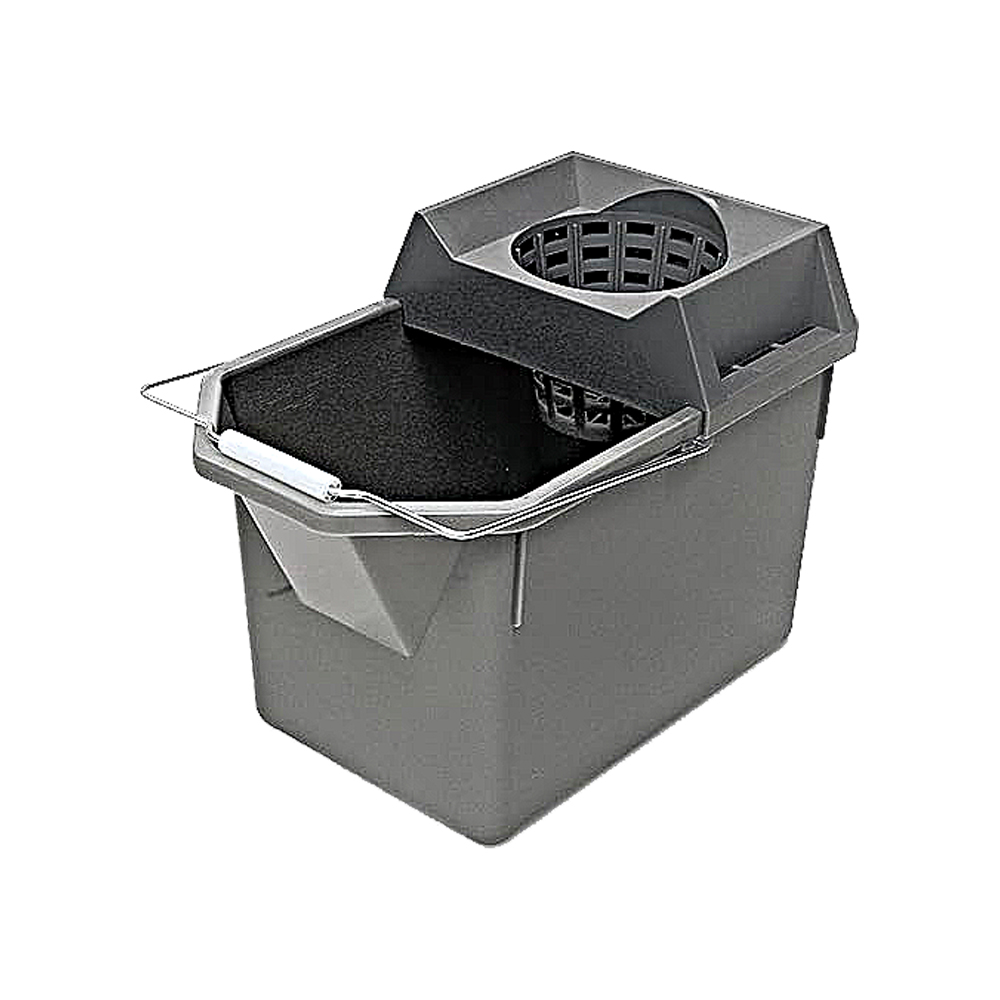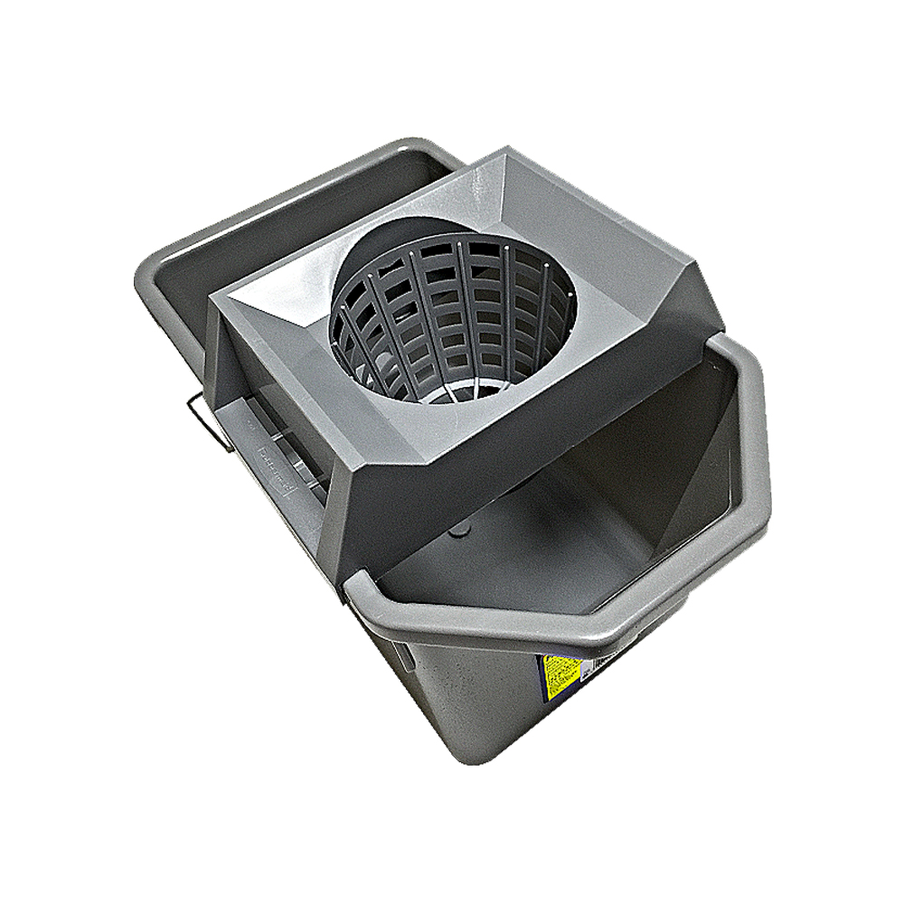 The Rubbermaid Commercial Pail and Mop Strainer Combo makes it easy to travel up and down stairs with a 15-quart pail and strainer capable of wringing a 10 oz. mop. Constructed of durable plastic it is easy to clean and nests for easy storage.