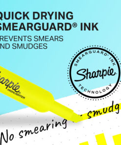 Sharpie Highlighters are reliable and long-lasting. Each highlighter features a different fluorescent color, a wide barrel and large ink supply for dependable marking. The quick-drying ink resists smearing (let ink dry before highlighting). These highlighters feature an easy gliding chisel tip that highlights and underlines both wide and narrow lines of text.